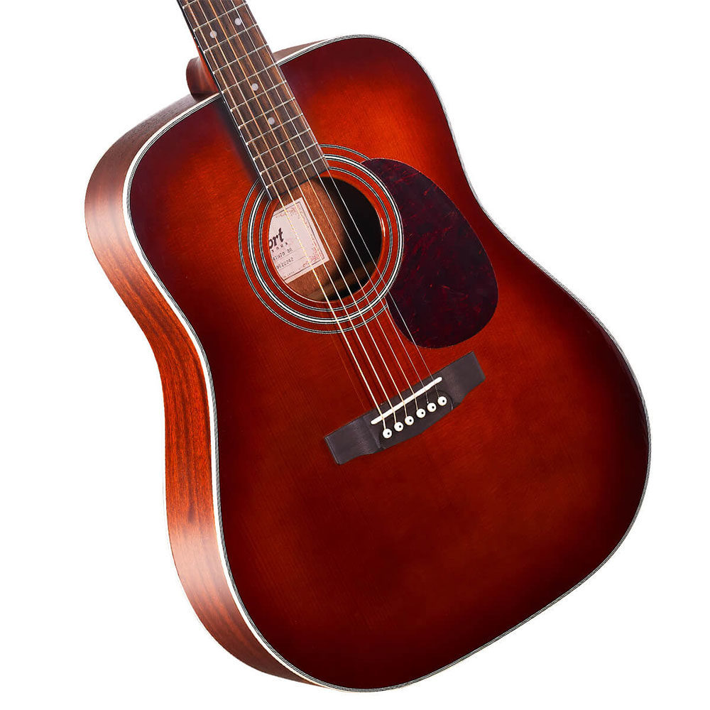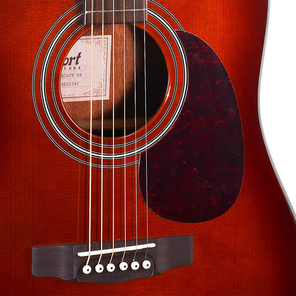 Cort Earth70 BR היא גיטרה אקוסטית בסגנון דרדנוט (Dreadnought) עם טופ מלא מעץ אשוח, המיועדת לנגנים המחפשים צליל חזק, פתוח ונוכח – במחיר נגיש ואיכות בנייה גבוהה.