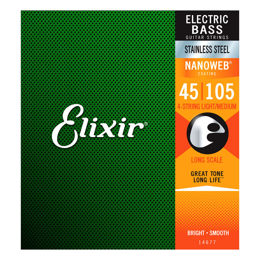 סט מיתרים לגיטרה בס אליקסיר - 45-105 - ELIXIR 14677 Bass NANOWEB® Stainless Steel